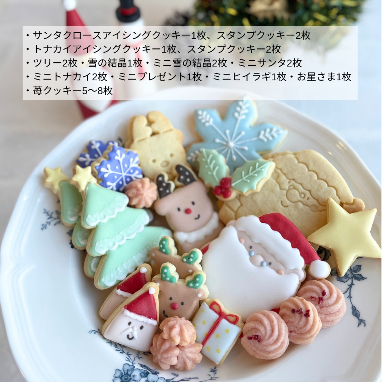 ・トナカイアイシングクッキー1枚、スタンプクッキー2枚(約4cm×6cm)