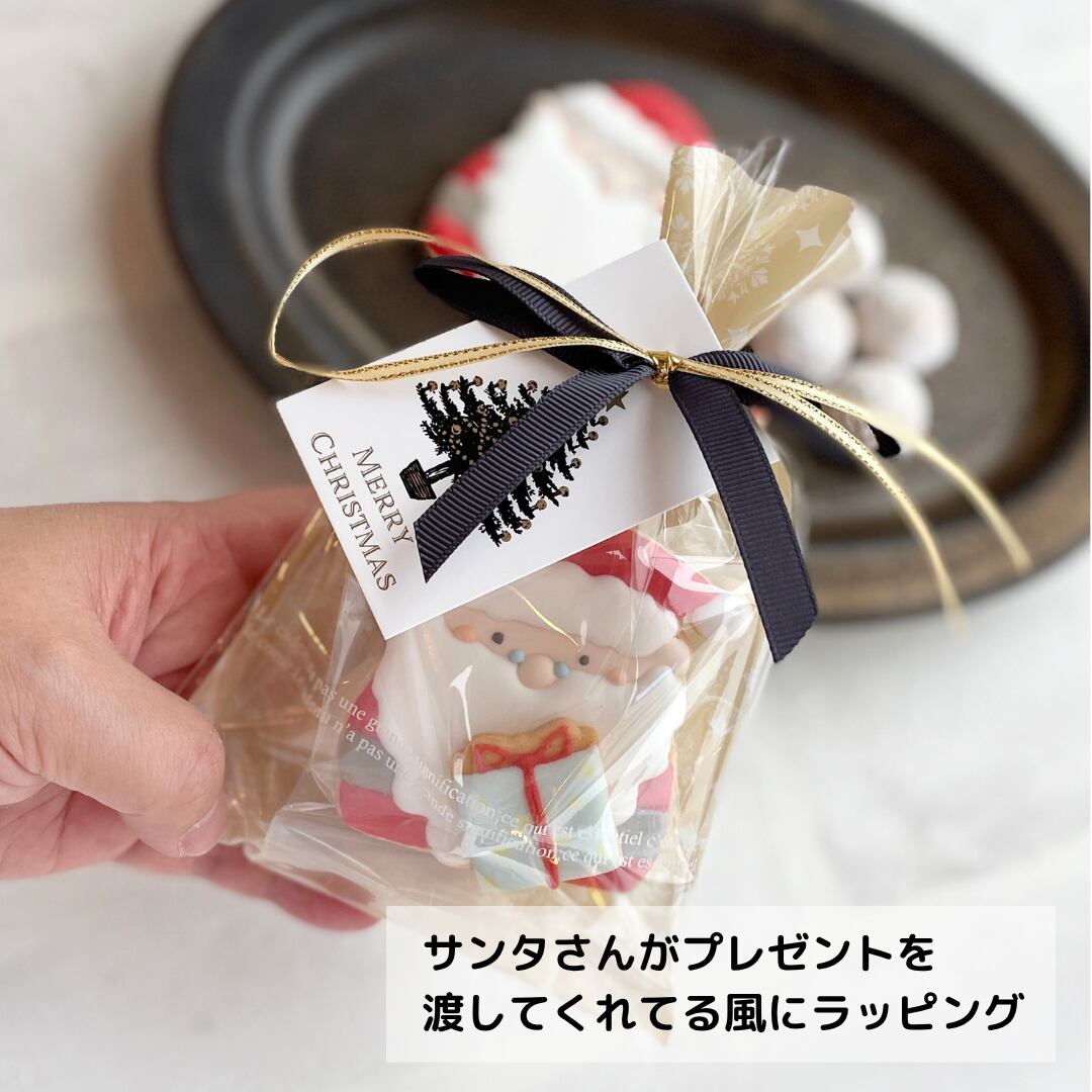 もこもこお髭のサンタクロースのアイシングクッキー、小さなプレゼントのアイシングクッキー、